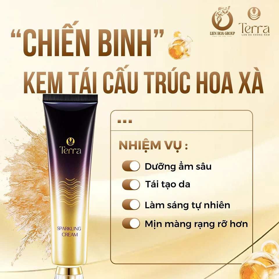 KEM TÁI CẤU TRÚC HOA XÀ TERRA (Sparkling Cream)- Sản phẩm thuộc hệ thống Terra công nghệ Pháp TR.KEMHOAXASản Phẩm Điều Trị - Dưỡng Terra1.200.000đSố lượng: 25487 Tuýp